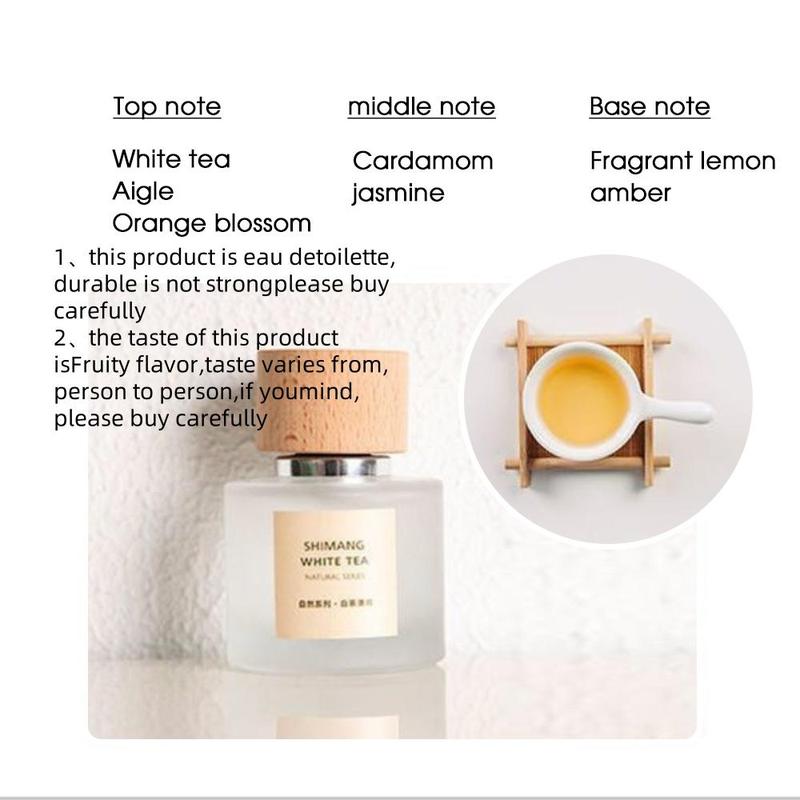 【White Tea Essence】: Infused with the delicate scent of White Tea, this perfume provides a soothing, light fragrance ideal for daily wear.