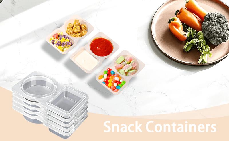 *Double Compartment Design : The Double Compartment Condiment Containers,Has 2 Snack Pack Containers,This Design Allows For Convenient Storage And Carrying Of Different Foods,it Can Completely Avoid The Mixing Of Food Flavors And Keep Food Fresh,no Need To Worry About Affecting The Taste Of Food.