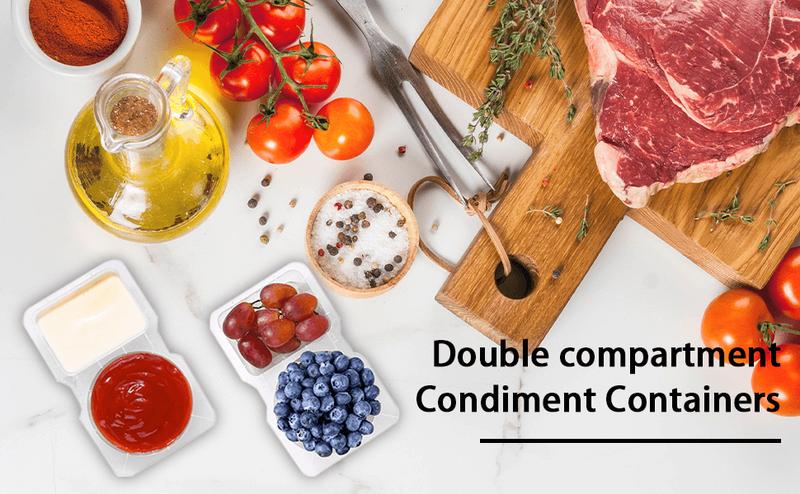 *Multipurpose Packaging : The Two Compartment Snack Container,Double Condiment Containers With Lids Has An Inwardly Buckled Design,with Good Sealing,leak-proof And Lightweight Features,Convenient To Carry,It Can Be Used For Takeout Orders,Delivery Services,Restaurants And More.
