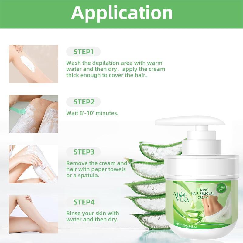 【Gentle Formula】: Infused with Aloe Vera, this hair removal cream offers a gentle and non-irritating experience, suitable for various skin types.