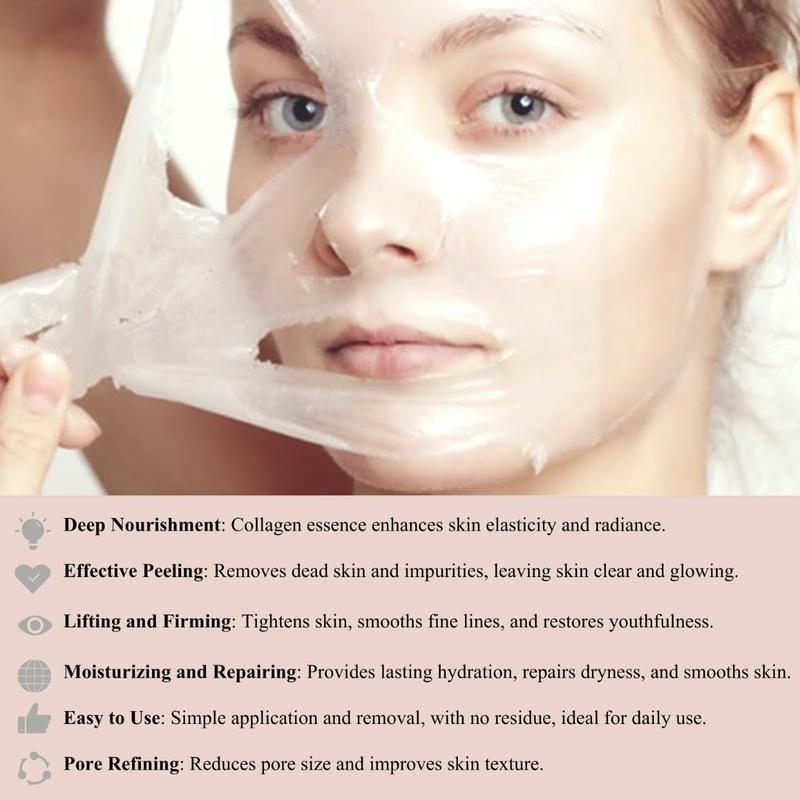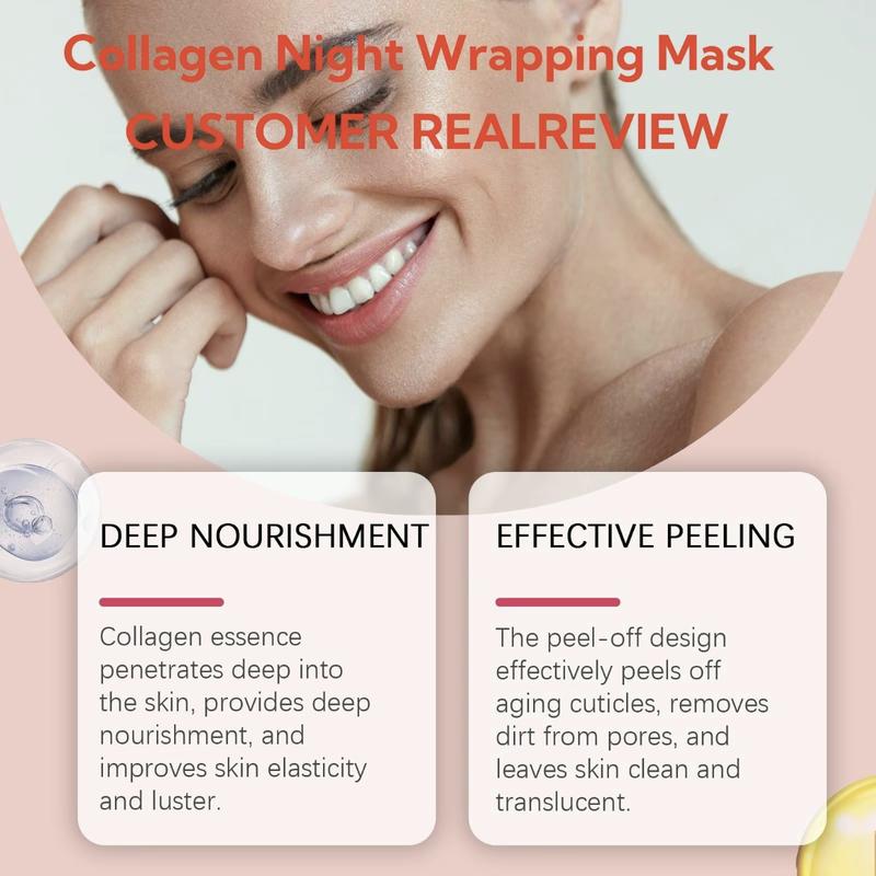 - 【Collagen Overnight Wrapping Peel Off Facial Mask Pack】The Collagen Night Wrapping Mask Pack is specially designed for overnight care, that can make your skin deeply absorb nourishing ingredients when sleep, and have a firmer and more elastic skin in the next morning