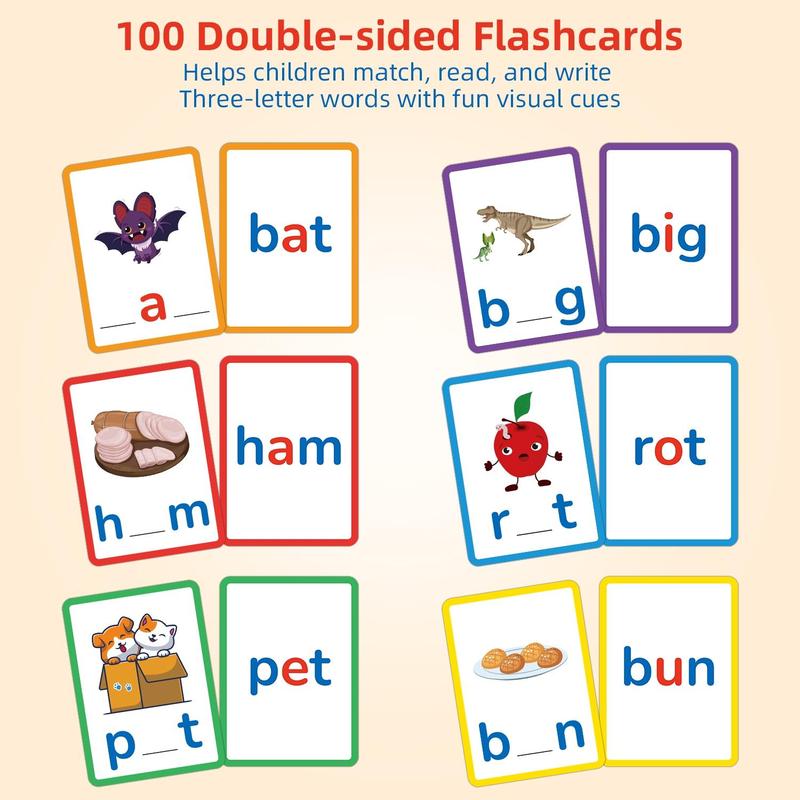 【Bilingual Learning】: These CVC word spelling flash cards are designed for both English and Chinese learners, enhancing language skills in a bilingual environment.