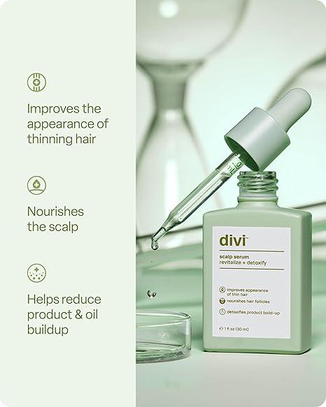 Divi Scalp Serum for Fuller, Thicker-Looking Hair & Healthy Scalp, 30ml Divi Scalp Serum is clinically shown to improve volume and reduce the appearance of hair thinning in as little as 6 weeks.* Divi’s Scalp Serum targets scalp health with a unique blend of amino acids, caffeine, peptides, and rosemary oil.