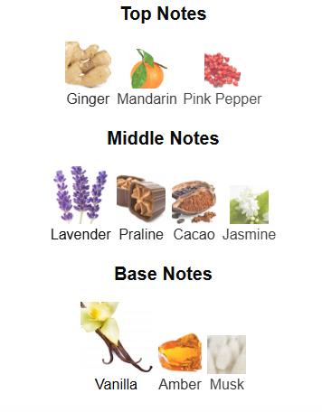 - Heart: Praline, Lavender, Cacao